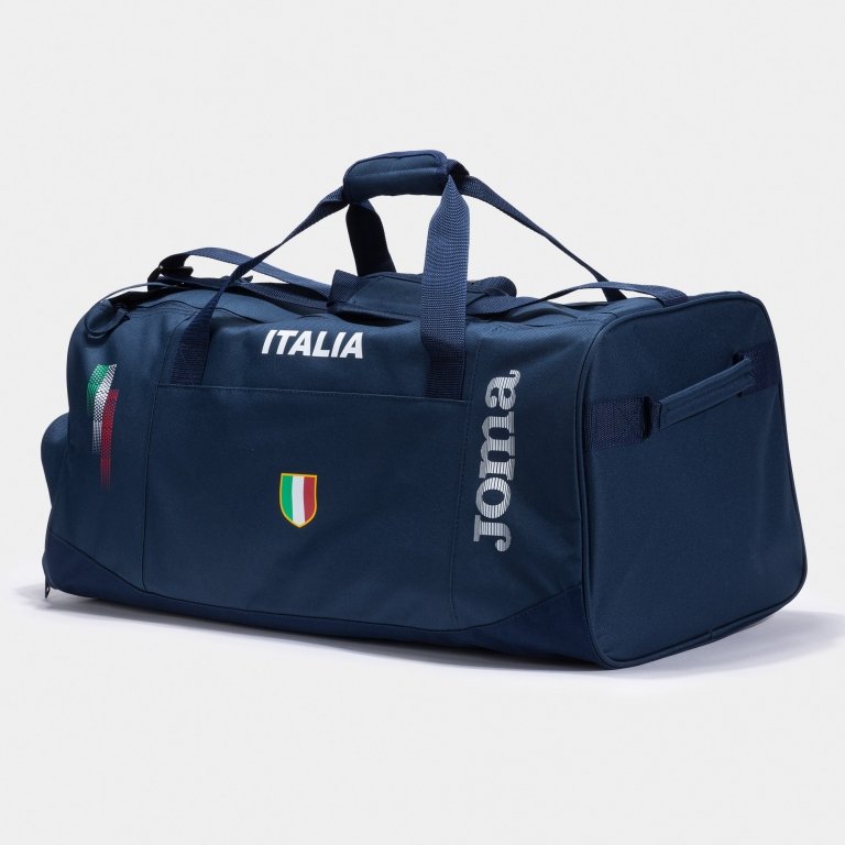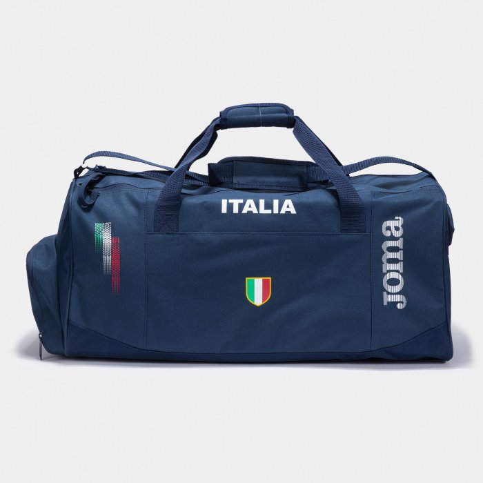 I colori della bandiera italiana sono stampati sulla parte anteriore della borsa. Stampa personalizzata ITALIA. Logo Joma anche serigrafato.